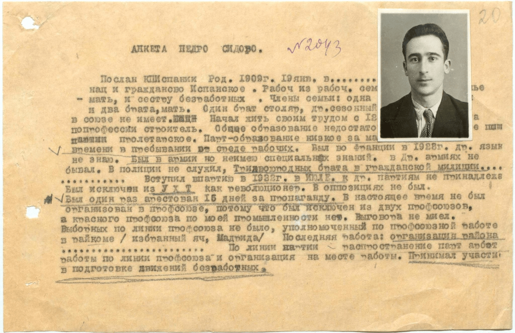 - Apuntes autobiográficos en siete cartillas de Juan Cobo García (Moscú, 1939, Archivo de la Internacional Comunista).