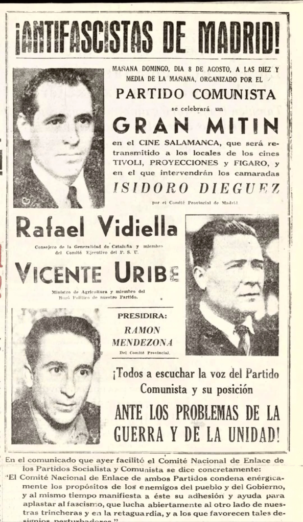 José Antonio Uribes, dirigente comunista, estaba en el Comité Ejecutivo Popular de Valencia como responsable de la sección de Milicias, y Talens era delegado provincial del PCE. El contexto general explica el peso de estas responsabilidades.