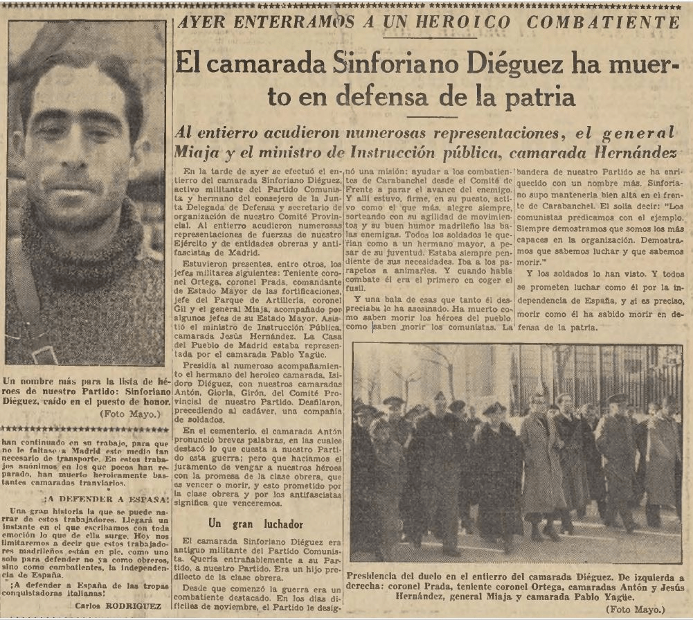 “…su amigo, el legendario ‘Chapáyev español’ Valentín González, para entonces mundialmente conocido como ‘el Campesino’, vino con unas tablas sin cepillar y unas herramientas, clavó un pequeño ataúd para Carlitos y lo llevó en una carretilla al cementerio”.