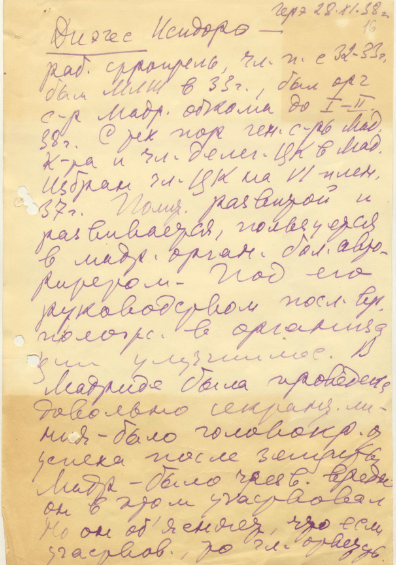 “Cuando yo ingresé en el Partido Comunista y vine aquí, de hecho dejé de ser comunista: tengo que abandonar las reuniones porque no soy del PCUS. Esto es un absurdo que me ha costado muchos sufrimientos. Yo quiero ser comunista en España y en Rusia y en cualquier parte que esté, pues por ser comunista luché, por ser comunista vine a la URSS, por ser comunista Franco me tiene condenado a muerte, por ser comunista dejé mi casa, mis amigos, mi patria”.