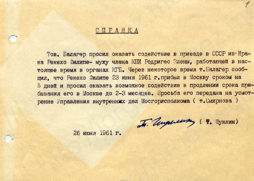 El Comité Internacional del PCUS respondió con rapidez. El 7 de mayo de 1958 se elaboró un informe donde se relata que el secretario de la célula de su fábrica, camarada Kasheev, habló personalmente con él para explicarle que podía solicitar su ingreso “en las mismas condiciones que cualquier ciudadano soviético”.